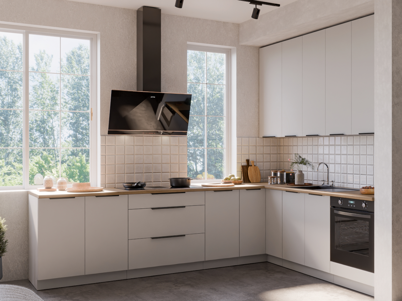 | Mânere | În set: Metal, în negru (225mm) | |