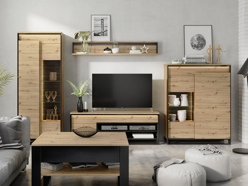 Vitrină QUANT QA03 (76/195/41) Dulap TV QUANT QA04 (155/55/41) Poliță de perete QUANT QA05 (155/26/25) Vitrină QUANT QA06 (110/140/41) Măsuță de cafea QUANT QA09 (100/55/70) |