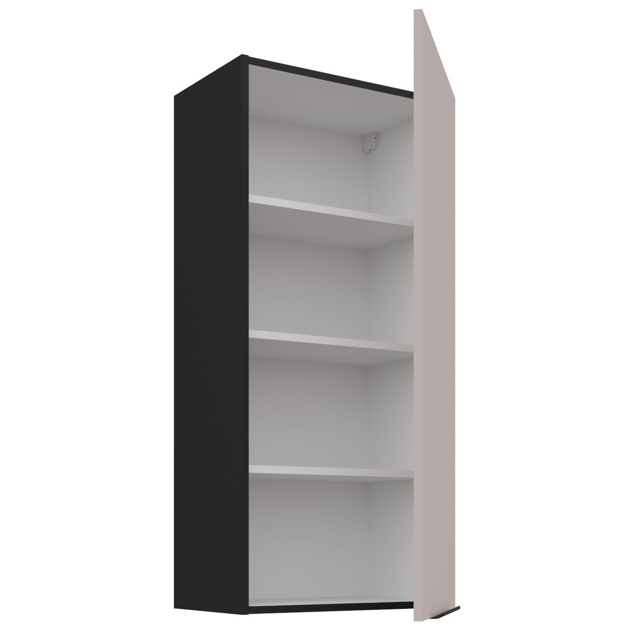 Interiorul dulapului de culoare albă. Dulapul are trei rafturi. |